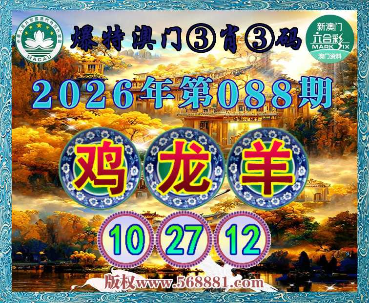 088期:『爆特澳门』 🍗③肖③码🍗【鸡羊】【10.27.12】开:龙27