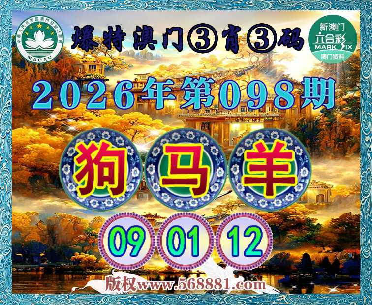 098期:『爆特澳门』 🍗③肖③码🍗【狗马羊】【09.01.12】开:虎17