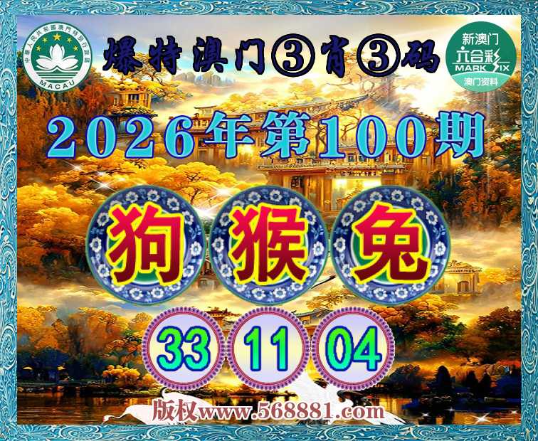100期:『爆特澳门』 🍗③肖③码🍗【猴兔】【33.11.04】开:狗33