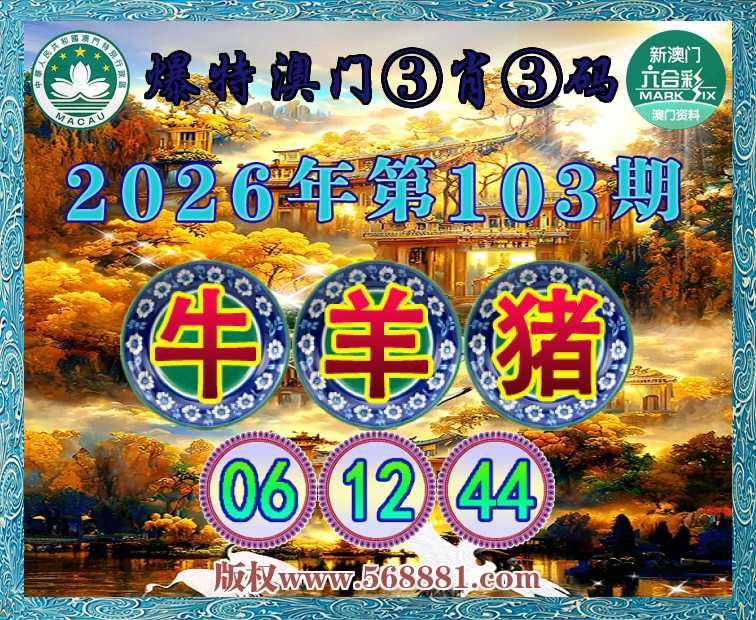 103期:『爆特澳门』 🍗③肖③码🍗【羊猪】【06.12.44】开:牛06