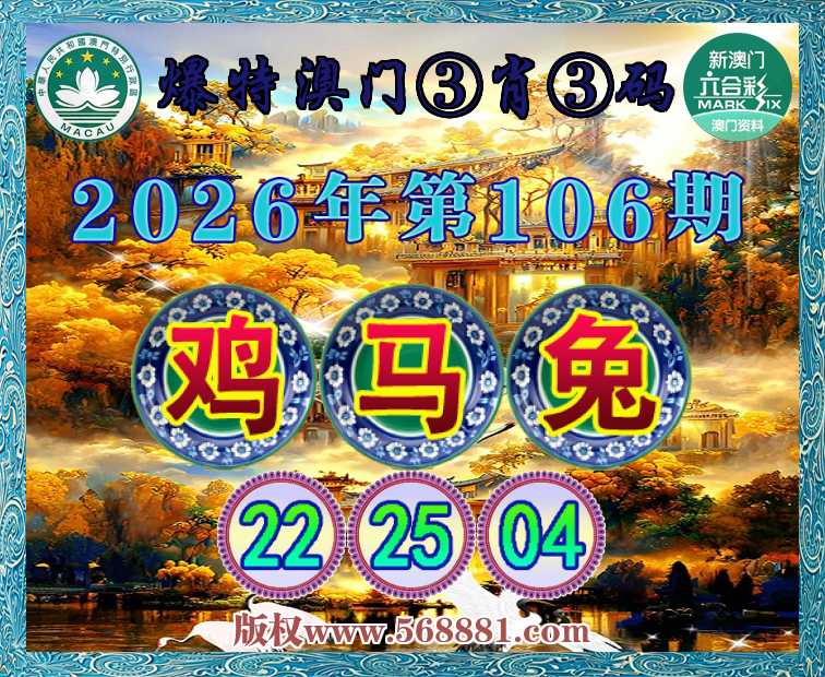 106期:『爆特澳门』 🍗③肖③码🍗【马兔】【22.25.04】开:鸡22