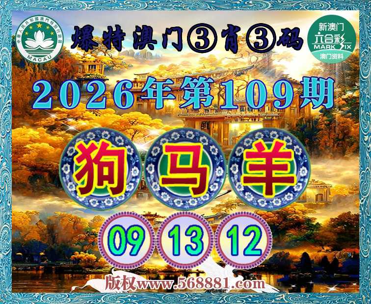 109期:『爆特澳门』 🍗③肖③码🍗【狗马羊】【09.13.12】开:00准